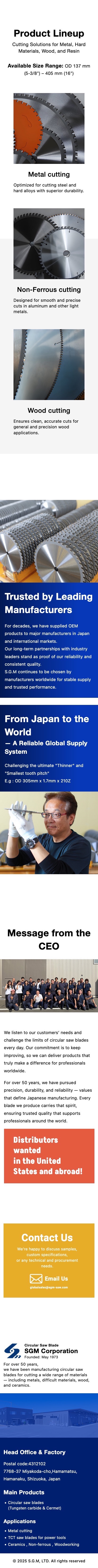 - Circular Saw / Industrial Cutting / Regrindingなど海外向けキーワードを考慮